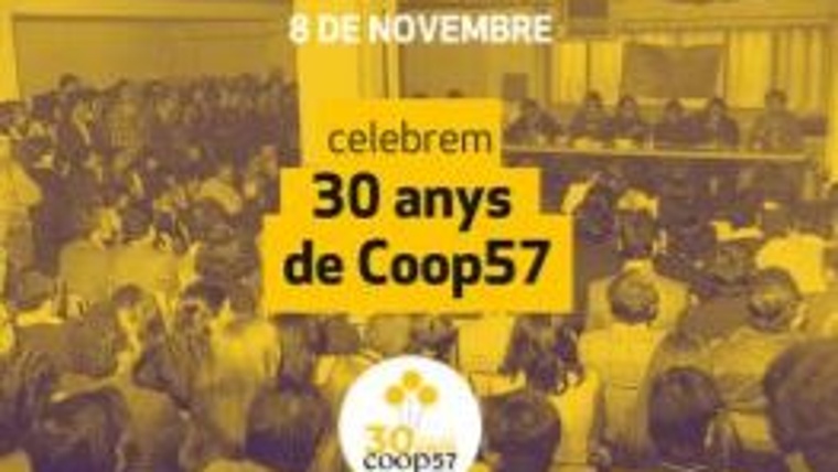 Celebració dels 30 anys de Coop57–serveis financers ètics i solidaris L'acte, conduït per la periodista Laura Aznar, serà una oportunitat per repassar la trajectòria de Coop57, conversar sobre el present i mirar cap al futur que continuem construint col·lectivament.