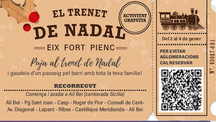 Gaudeix d'un passeig màgic amb el nostre Trenet de Nadal i descobreix el barri de l'Eix Fort Pienc amb tota la família!