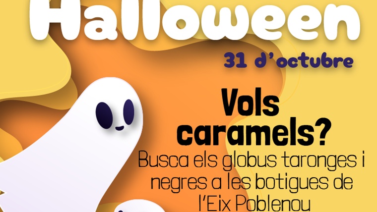 Passeja pel barri buscant les botigues amb globus taronges i negres. Les nostres botigues tenen els millors dolços!